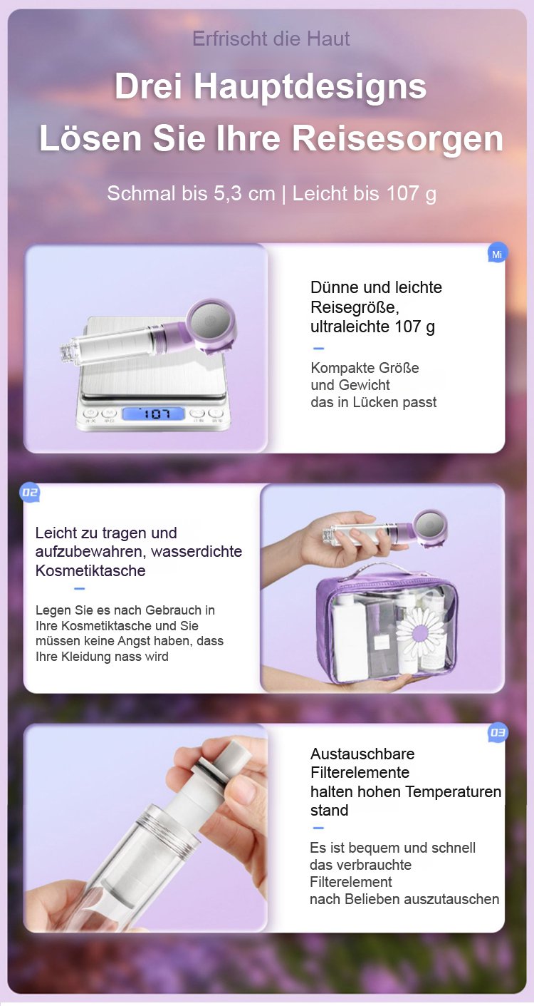 【Reiseschminktasche als Geschenk】 Tragbares Hochdruck-Wasserfilter-Duschkopf-Set