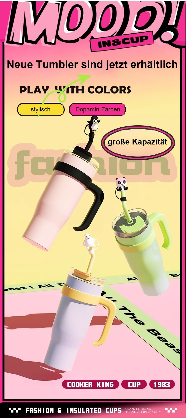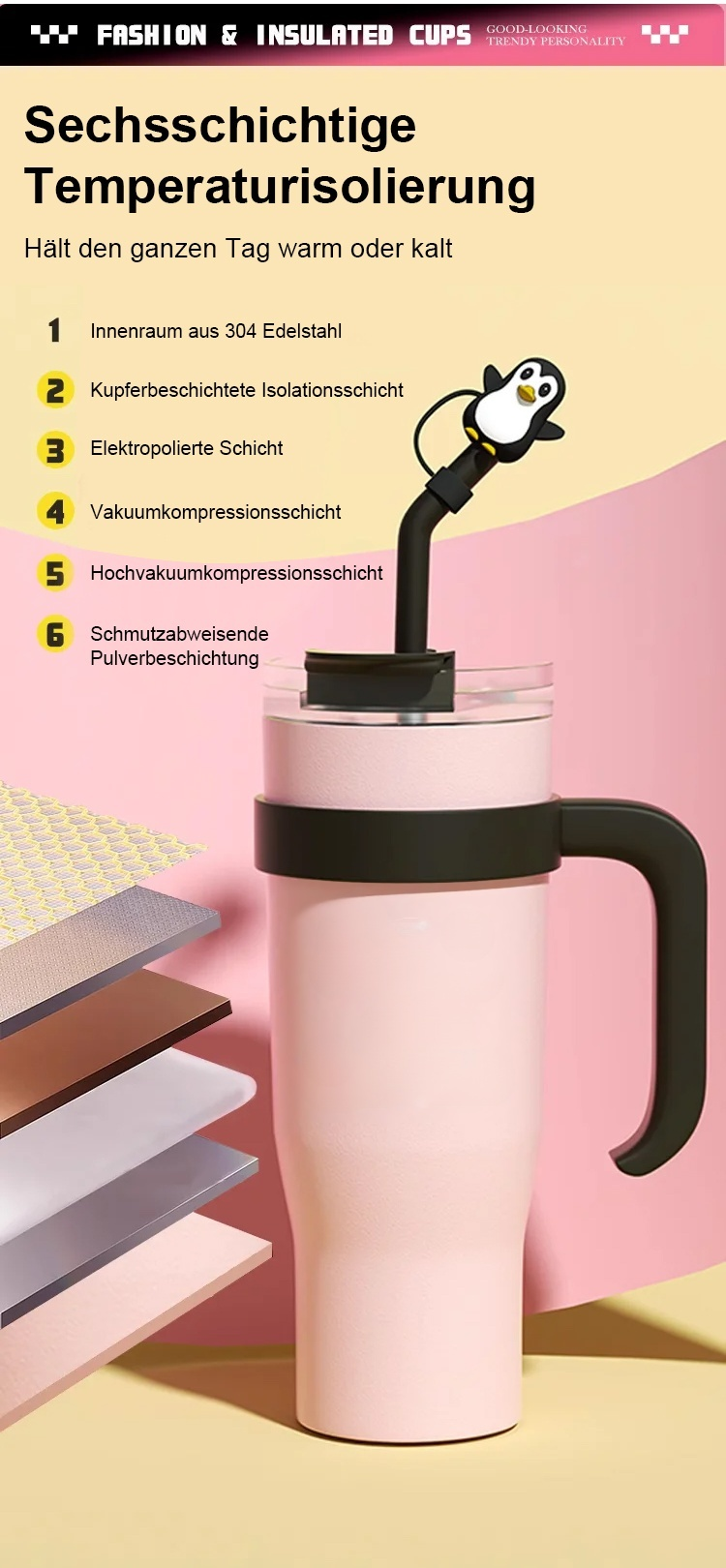 Großer Eisbarbecher mit Deckel und Strohhalm
